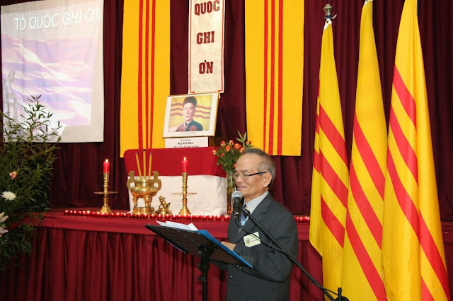 Ông nói lời cám ơn đặc biệt đến mọi người đã hưởng ứng lời mời của Khối đến tham dự buổi Lễ và kính chúc Đồng Hương sớm có ngày trở về Quê Hương sống trong tự do.